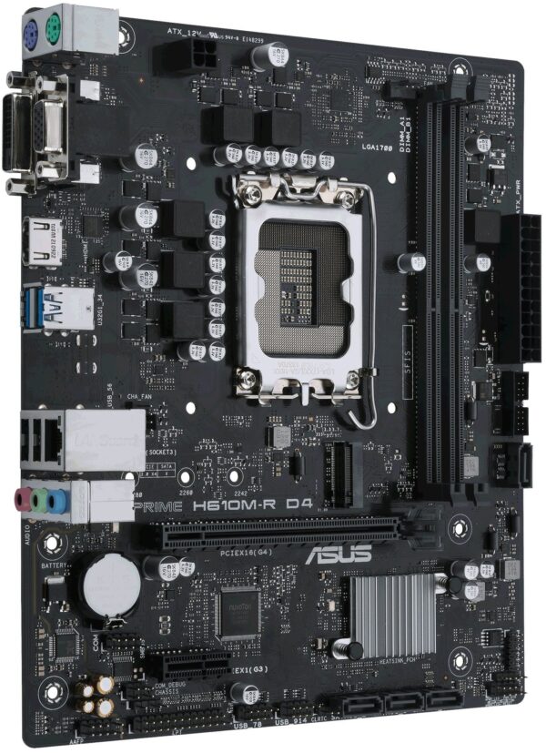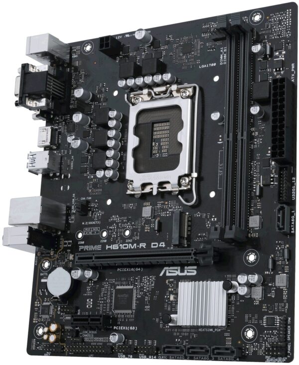 Prime H610M-R D4 пропонує один слот M.2, що підтримує швидкість передавання даних до 32 Гбіт/с через PCIe 3.0, що дає змогу прискорити завантаження і час завантаження застосунків із дисків ОС або застосунків.
