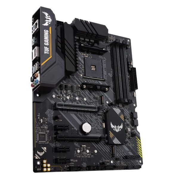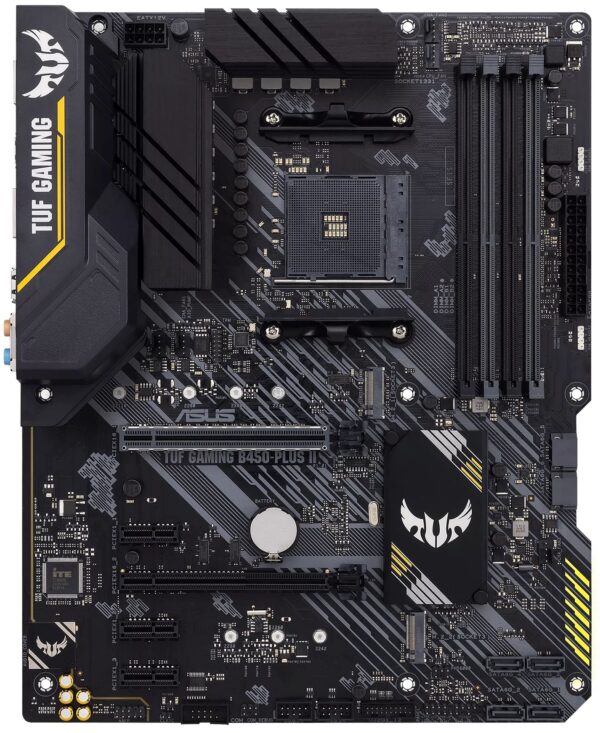 Материнська плата TUF Gaming B450-PLUS II являє собою чудову основу для складання високопродуктивного геймерського ПК, доповнену безліччю функцій для підвищення ігрового комфорту: високошвидкісним мережевим контролером, який мінімізує затримки в онлайн-іграх, якісною аудіосистемою, яка поліпшує геймплей у шутерах, і вбудованою RGB-підсвіткою, яка може синхронізуватися із сумісними аксесуарами.