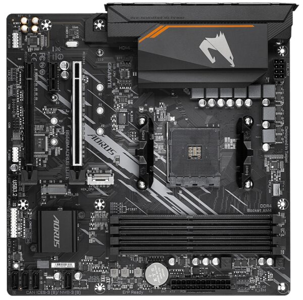 Підсистема живлення материнських плат Gigabyte сімейства AORUS у складі цифрового PWM-контролера та силових МОН-транзисторів Low RDS (on) організована за схемою 5 + 3 фази, забезпечує гарантовану працездатність процесорів AMD Ryzen 3-го покоління й інших енергоємних компонентів материнської плати, а також підвищену продуктивність і апаратну масштабованість платформи загалом.