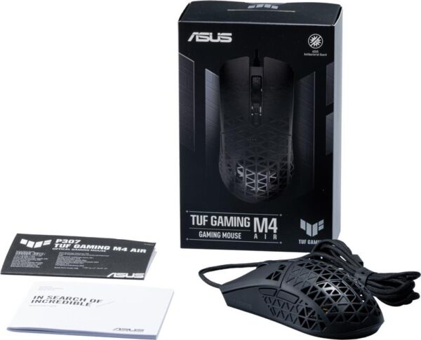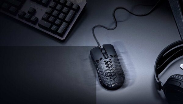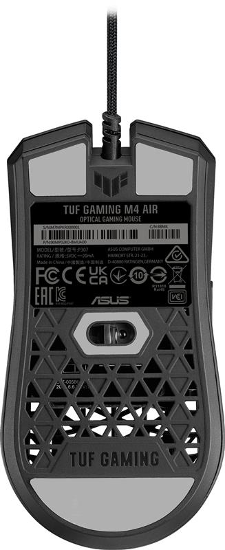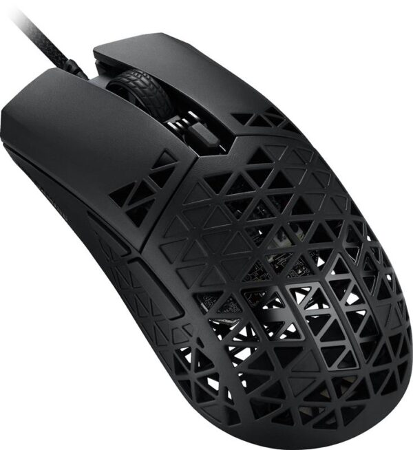 Вага миші TUF Gaming M4 Air становить усього 47 грамів завдяки ультралегкому корпусу Air Shell, у верхній частині якого використовується структурно міцна конструкція з порожнистих трикутників.