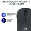 Пластикові деталі комп’ютерної миші М240 Silent виготовлені із сертифікованого переробленого пластику (48% для Graphite та 37% для Off-white та Rose). Продукт сертифікований як вуглецево-нейтральний